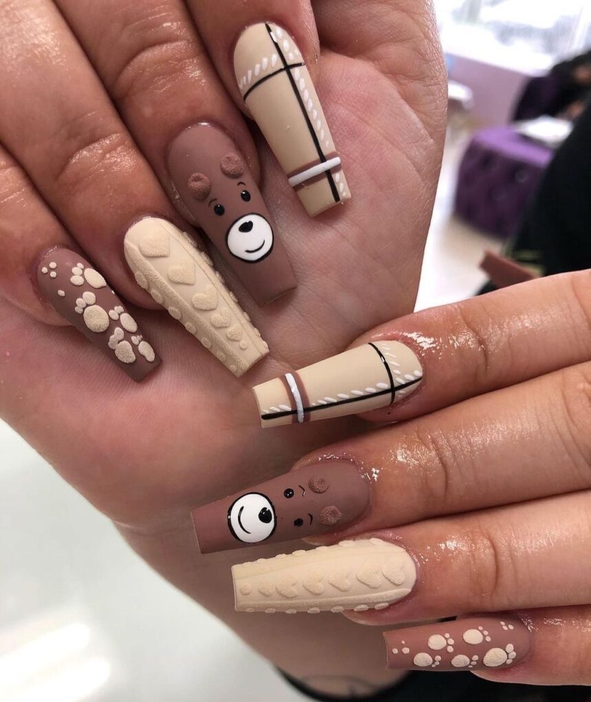 Adorn your nails with the soothing charm of Cozy Teddy Bear, a November nail design that combines soft, muted tones and adorable bear motifs to give your fingertips a whimsical and warm touch.