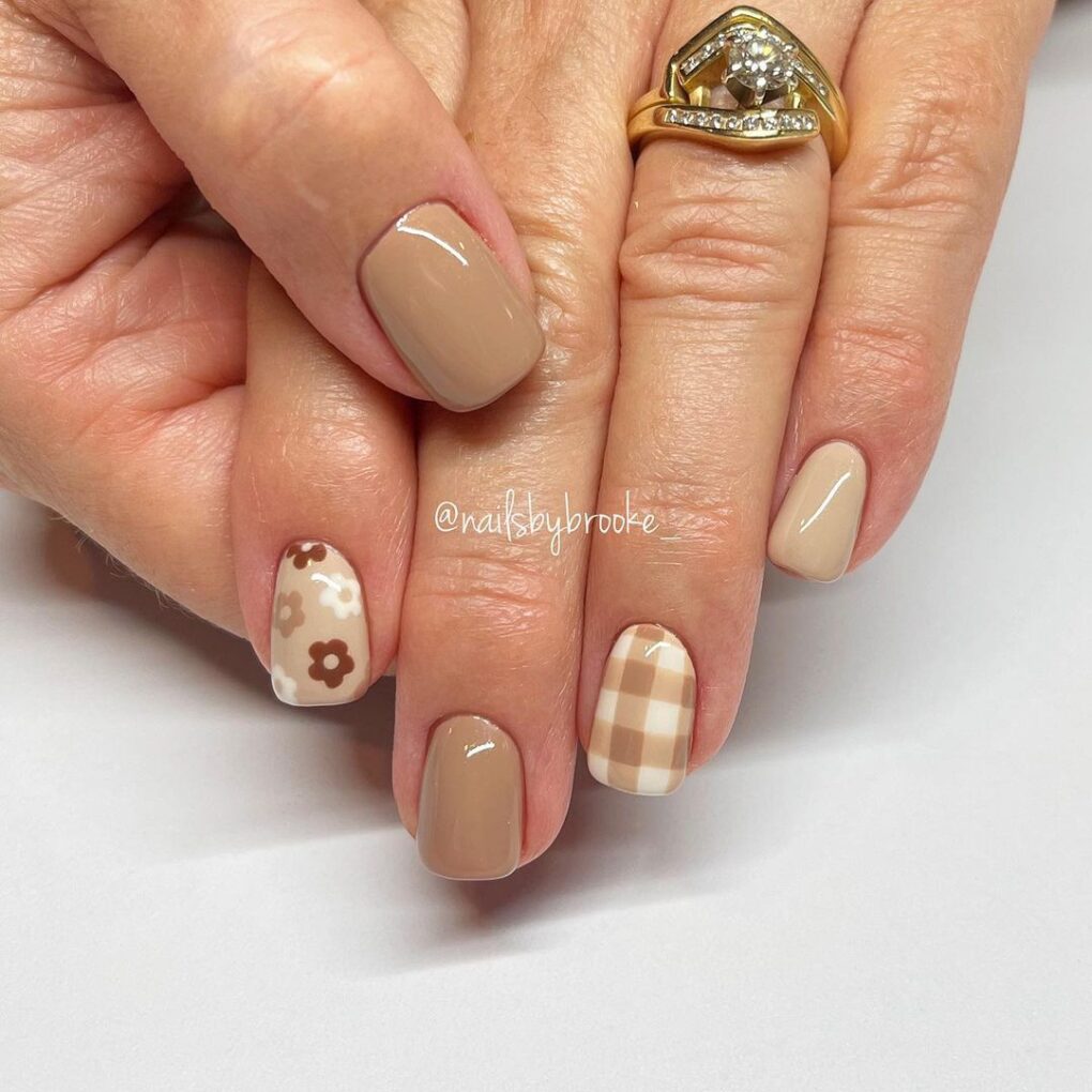 Sparkling with sophistication, Tan Gingham graces your fingertips with a chic nail design that includes a timeless tartan pattern in neutral tones, adding a touch of elegance to your November look.