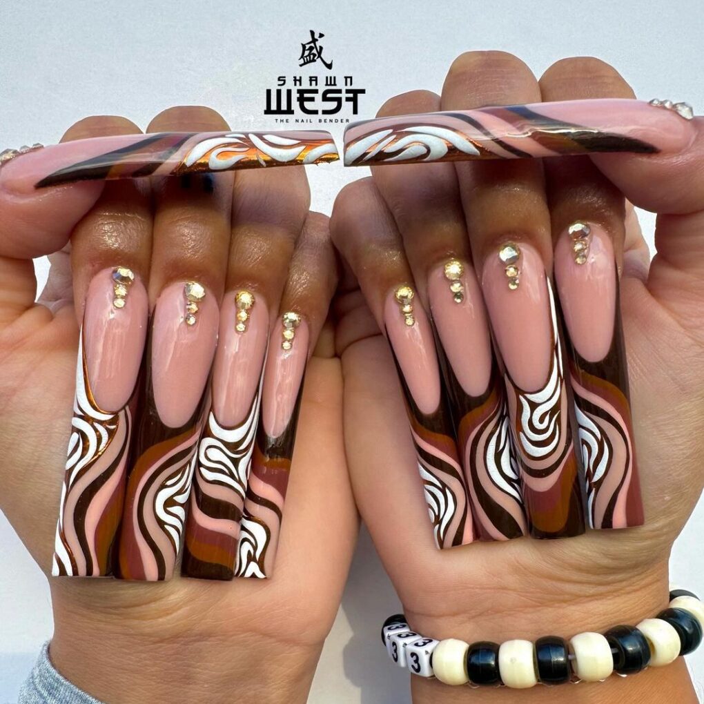 Gracefully imitate adorable peanut butter swirls with the Peanut Butter Swirl, a November nail design that adds a touch of whimsical charm to your fingertips in a uniquely adorable way.
