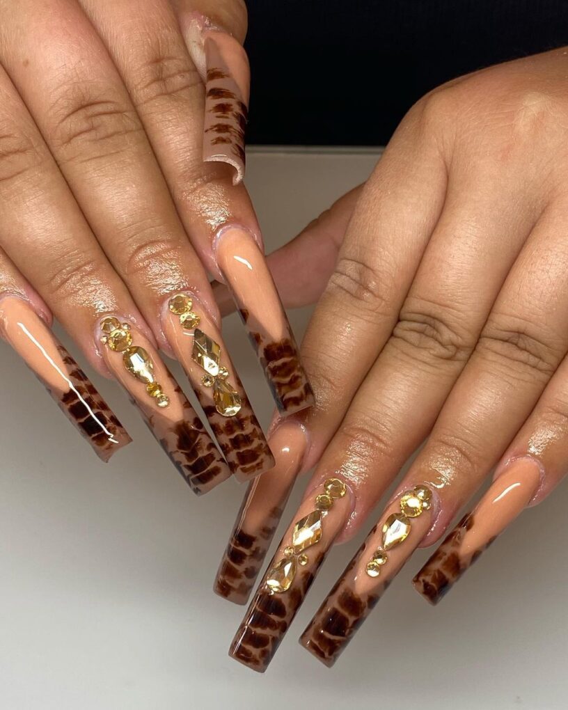 Experience the raw elegance of tortoiseshell with November’s Tortie Nails design, which mimics intricate patterns and warm hues, allowing you to go crazy with sophistication at your fingertips.