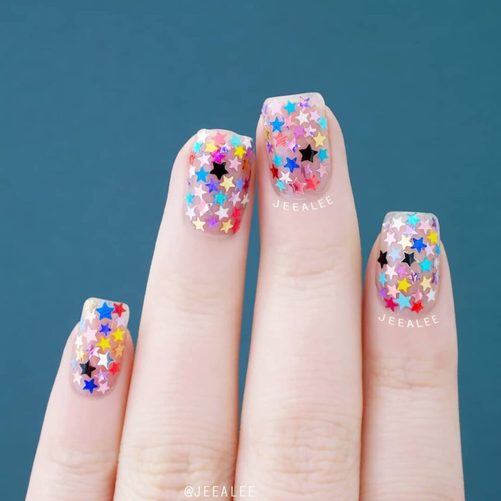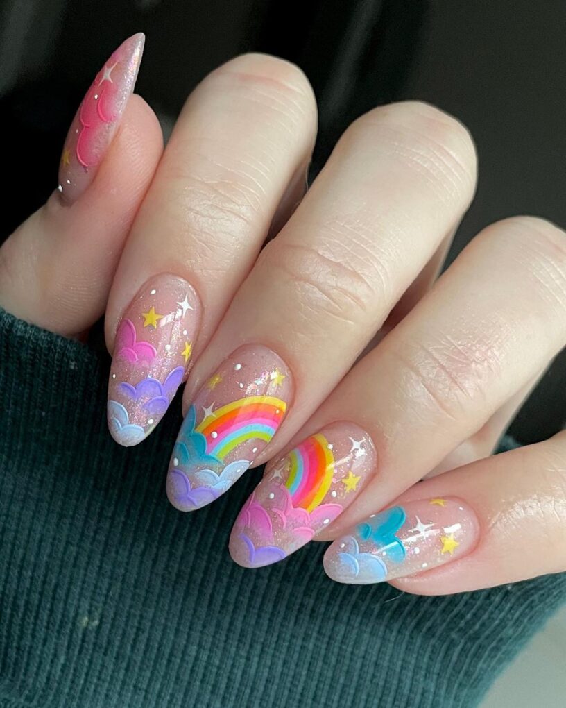 Like a rainbow after a storm, let your nails sparkle with bright rainbow colors, reminding us all that beauty can emerge even in the darkest of times.