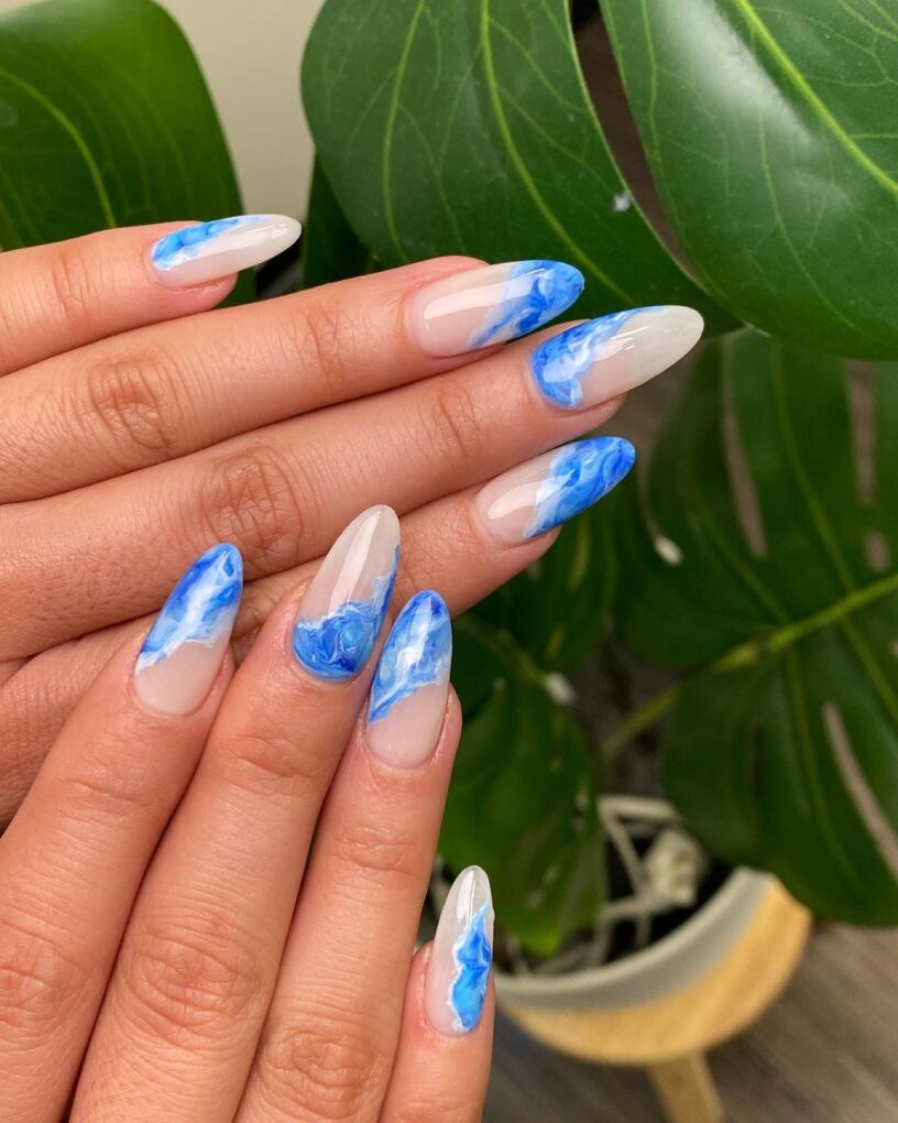 Transform your nails into a whimsical canvas with the Blue Butterfly design by delicately combining shades of blue and painting intricate butterflies that dance on your fingertips for an enchanting spring look.