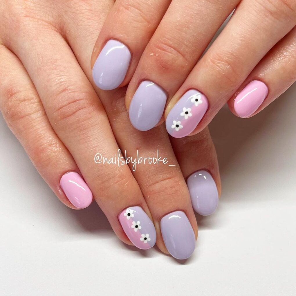 Adorn your nails with the enchanting beauty of “Purple Spring,” delicately intertwining shades of purple and hand-painted daisies to create a charming and vibrant manicure that captures the essence of the season.
