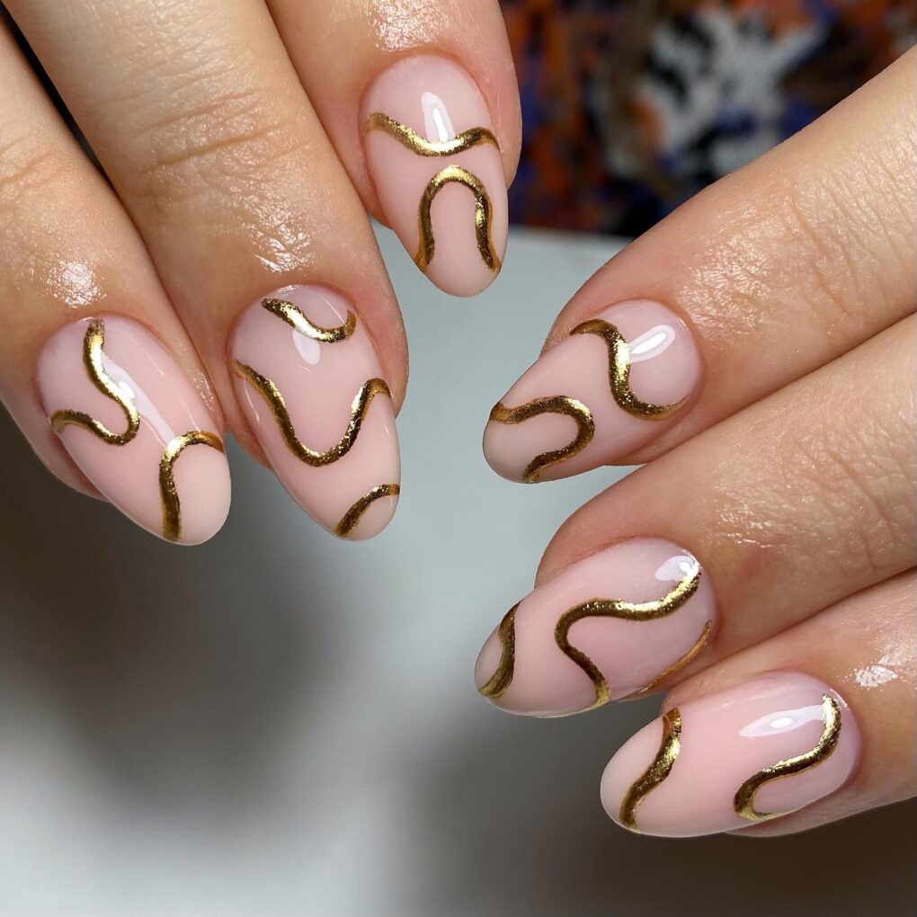 Highlight your nails with the “A Dust of Gold” design, which delicately combines golden tones to create a luxurious and elegant manicure that will add a touch of luxury to your spring charm.