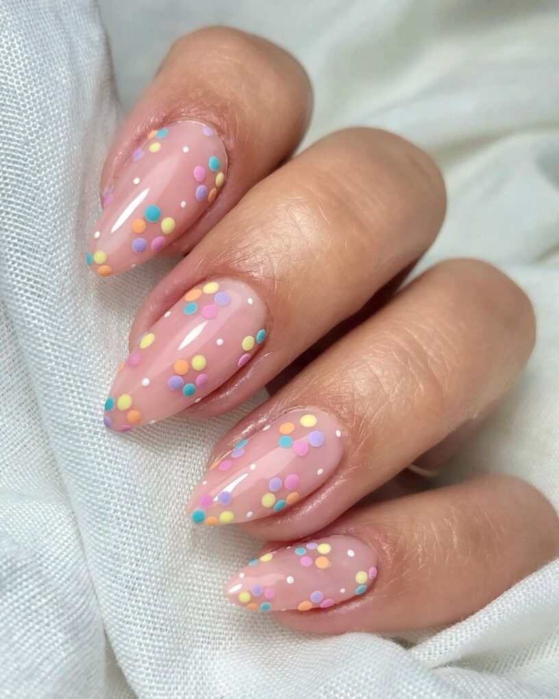 Playfully update your nails with the Spring Polka Dot design, cleverly combining vibrant polka dots and bright colors to create a whimsical and cheerful manicure that perfectly captures the spirit of the season.
