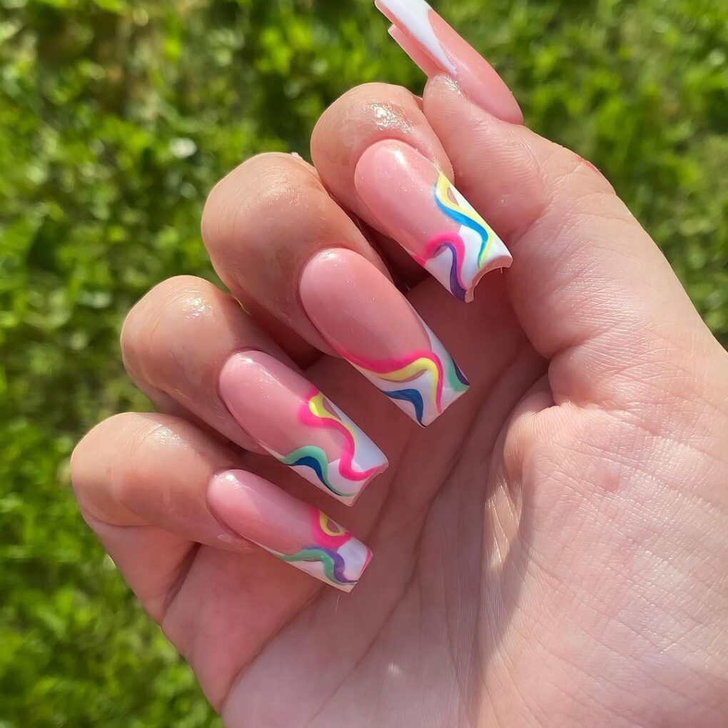 Enter the season with the French Spring Swish design, which elegantly combines soft pastel colors in a French manicure and adds elegance to your nails, embodying the freshness of spring.